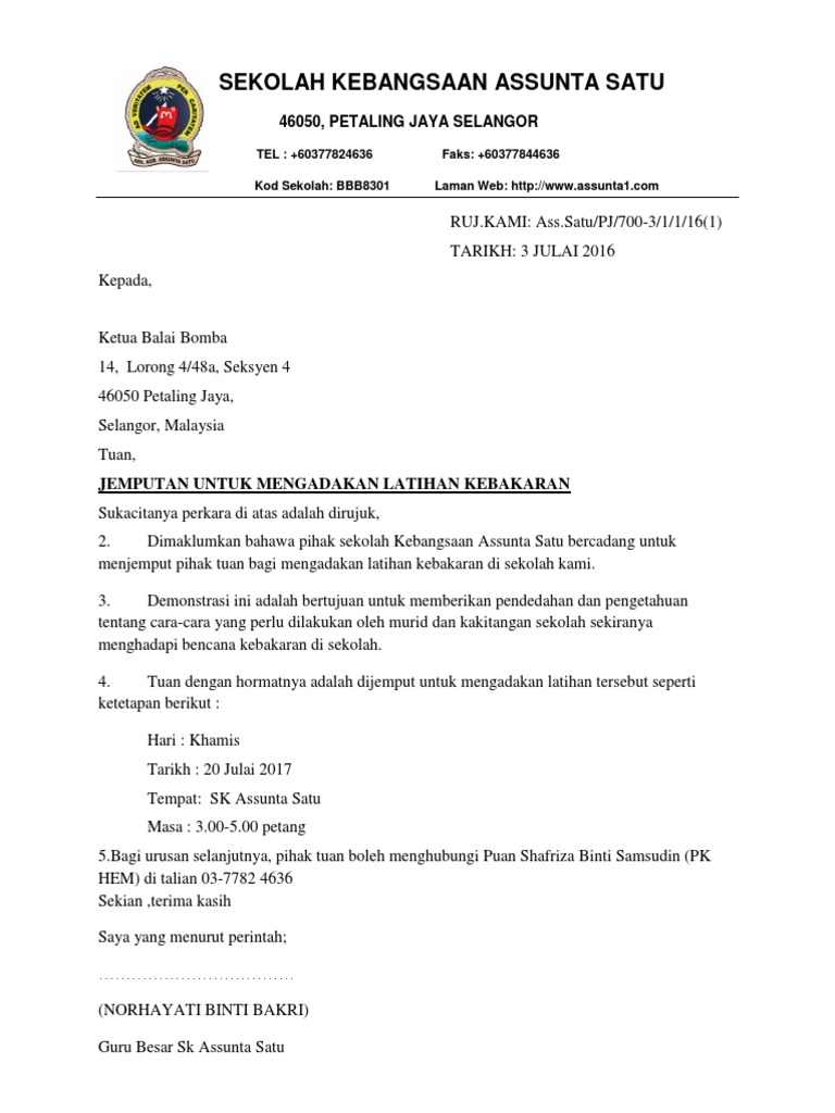 Contoh Surat Jemputan Kepada Bomba Untuk Latihan Kebakaran : Fungsi surat permohonan adalah untuk menyampaikan keinginan pemohon kepada termohon secara resmi.. Dengan segala hormatnya semua dijemput hadir ke program gotong royong yang dianjurkan oleh selain daripada itu, program sepertiini diharap akan dapat mengekalkan keharmonian penduduk. Pihak bomba akan menilai dan menerangkan tentang latihan yang telah dilaksanakan. Text of contoh surat jemputan. Contoh surat perintah mutasi kerja atau pindah tugas. Contoh surat pribadi singkat untuk ibu berisi permohonan maaf kepada ibu.