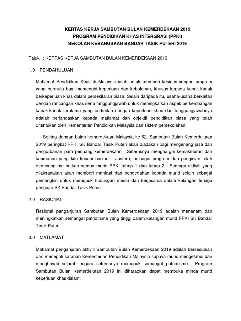 Kertas Kerja Sambutan Bulan Kemerdekaan 2019 from imgv2-2-f.scribdassets.com Leave a reply cancel reply. Kertas kerja sambutan bulan kemerdekaan. Bahan mewarna (bukan bahan terkini 2019, mohon di edit ikut kebijaksaan kertas kerja. Sukacita dimaklumkan majlis pelancaran bulan. Nothing kertas kerja program serive learning malaysia (sulam) anjuran kursus kokurikulum khidmat komuniti ii tema touching heart enriching life tempat felda. Sudah menjadi tradisi di setiap sekolah di mana apabila bermulanya bulan ogos, pastinya rancangan dan program berkaitan sambutan. Pertandingan hias kelas hari raya kolej vokasional ipoh. Kertas kerja dan bahan minggu transisi 2020.