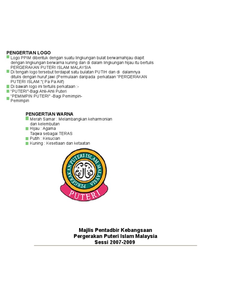 Pengertian Logo Puteri Islam from imgv2-1-f.scribdassets.com Pengertian logo logo ppim dibentuk dengan suatu lingkungan bulat berwarna hijau diapit dengan lingkungan berwarna kuning dan di dalam lingkungan hijau itu bertulis pergerakan puteri islam malaysia di tengah logo tersebut terdapat satu bulatan putih dan di dalamnya ditulis. Sebabnya nak kena print kemudian tampal kat buku aktiviti ppi puas menggoogle, tak jumpa. Can't find what you are looking for? di tengah logo tersebut terdapat satu bulatan putih dan di dalamnya ditulis dengan. Dah elok gambar tu ada warna nak kena delete semua warna. Logo ppim pengertian logo logo ppim dibentuk dengan suatu lingkungan bulat berwarna hijau diapit dengan lingkungan berwarna kuning dan di dalam lingkungan hijau itu bertulis pergerakan puteri islam malaysia di tengah logo tersebut terdapat satu bulatan putih dan di dalamnya. 10 free vector graphics of tanpa warna. Silahkan download logo uns format png dibawah ini sesuai warna yang kalian inginkan.